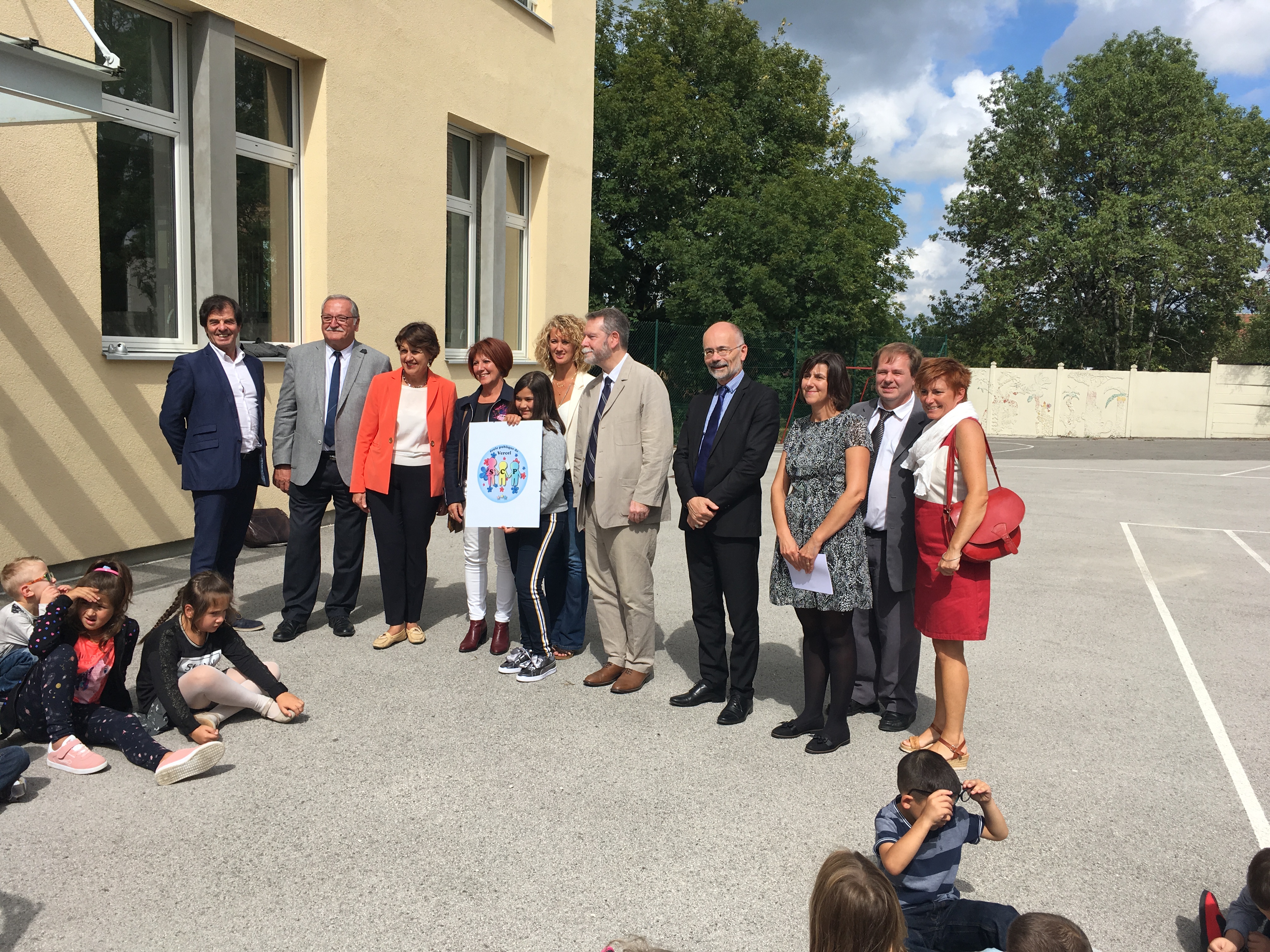 Le jour de la rentrée, l’école de Vercel a accueilli M. le Recteur, M. le DASEN ainsi que des élus. De nombreux partenaires étaient aussi présents pour assister au chant de rentrée ainsi qu’à une première séance pédagogique.